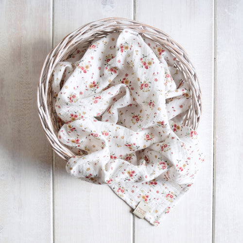 COPERTINA IN MUSSOLA - FIORI ROSA