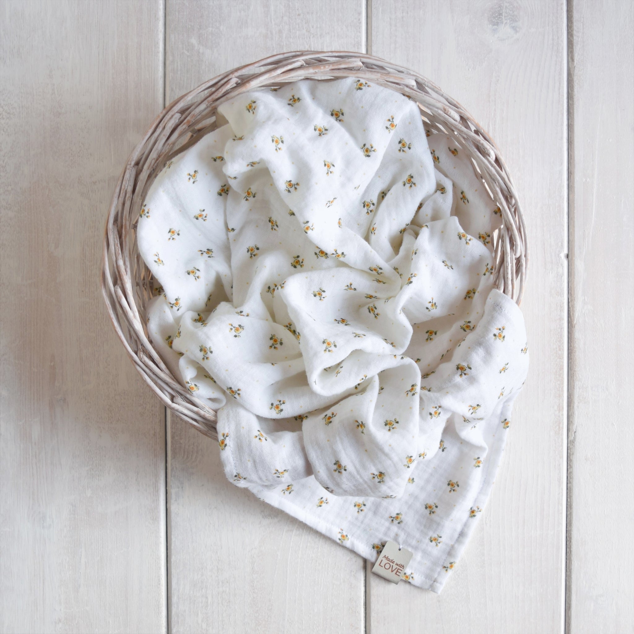 La copertina in mussola è realizzata in cotone biologico. Soffice, morbida ed elegante. Ideale da utilizzare come lenzuolino per la nanna, come asciugamano dopo il bagnetto e durante l’allattamento. Perfetta anche per fasciare il neonato, proteggerlo da sbalzi di temperatura, dal sole e dagli insetti. La versatilità la rende un elemento fondamentale del corredino nascita.