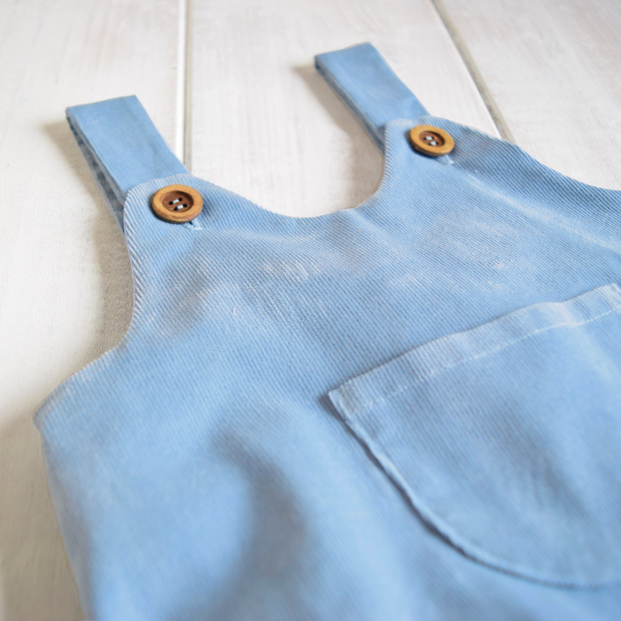 La salopette in velluto è il capo perfetto per chi è alla ricerca di un look elegante, senza rinunciare alla comodità. I bottoni in legno di cocco e la taschina sul davanti la rendono dolce e irresistibile. Per creare un completino unico puoi abbinare una camicia in mussola.